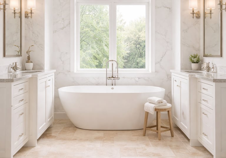 Complete bathroom remodeling with elegant tile designs and expert finishes.